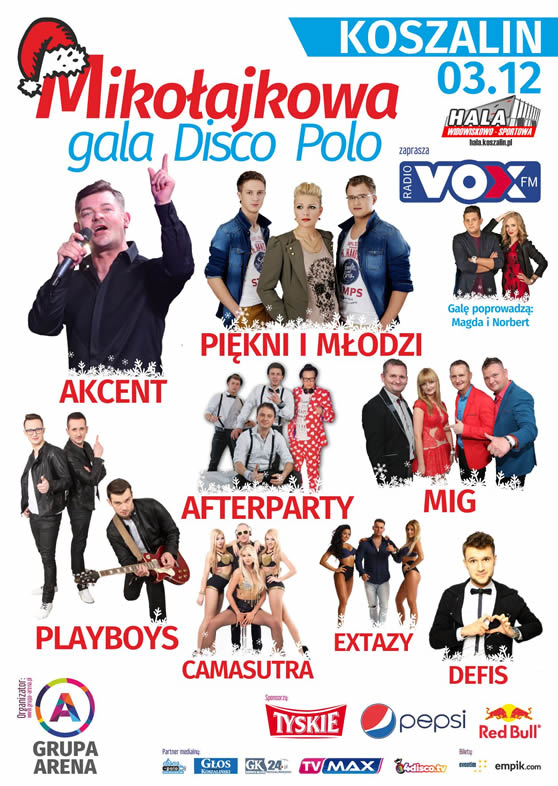 Mikołajkowa gala Disco Polo, godz. 19:00, 03 grudzień 2016r. Hala Widowiskowo-Sportowa.