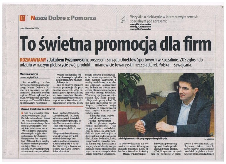 – Bo to było wręcz wydarzenie historyczne, tak śmiało mogę powiedzieć – argumentuje decyzję w rozmowie z redaktor Marzeną Sutryk, Prezes Zarządu Obiektów Sportowych w Koszalinie, Jakub Pyżanowski.