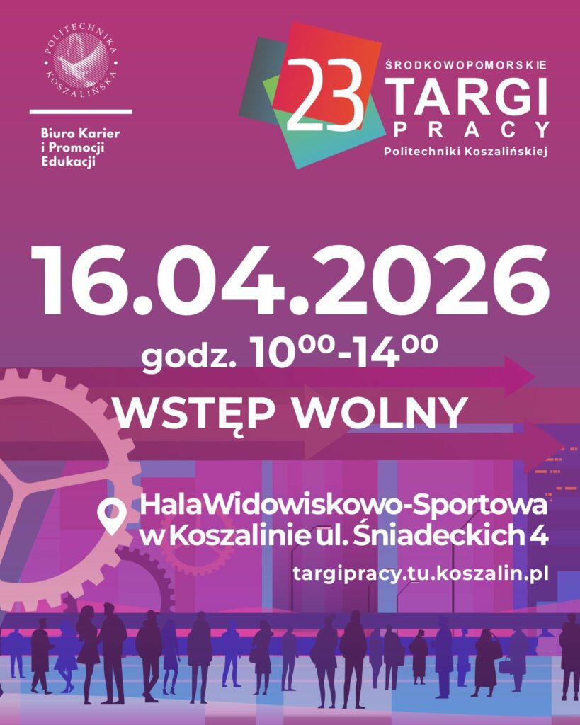 Wydarzenie zostało zaplanowane w dniu 16 kwietnia 2026 r. w Hali Widowiskowo-Sportowej w Koszalinie przy ulicy Śniadeckich 4 w godz. 10.00-14.00. Targi Pracy Politechniki Koszalińskiej